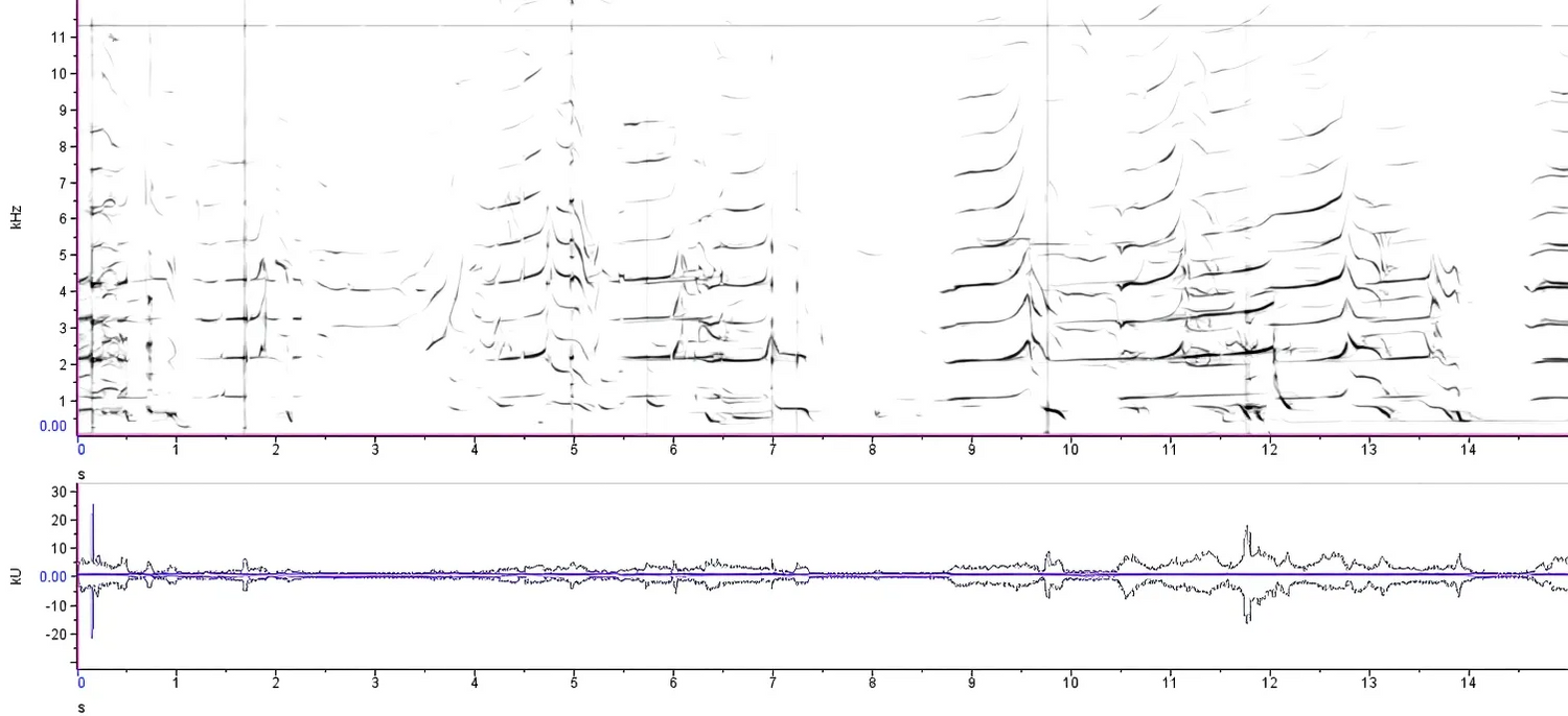 Spectrograms created from recordings of whale, dolphin, and seal vocalizations. Field notes and observations from surveys. Species identification details used by researchers. Inspiration drawn from my time on the water and underwater.